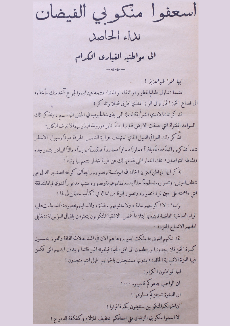 اسعفو منكوبي الفيضان نداء الحاصد الى مواطنيه الغيارى.