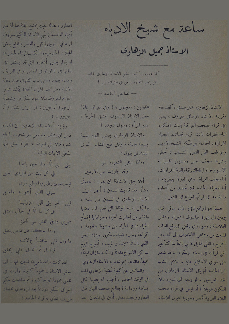 ساعة مع شيخ الادباء الاستاذ جميل الزهاوي :