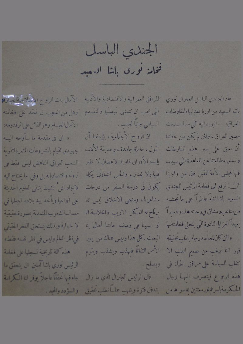 الجندي الباسل فخامة نورى باشا السعيد.