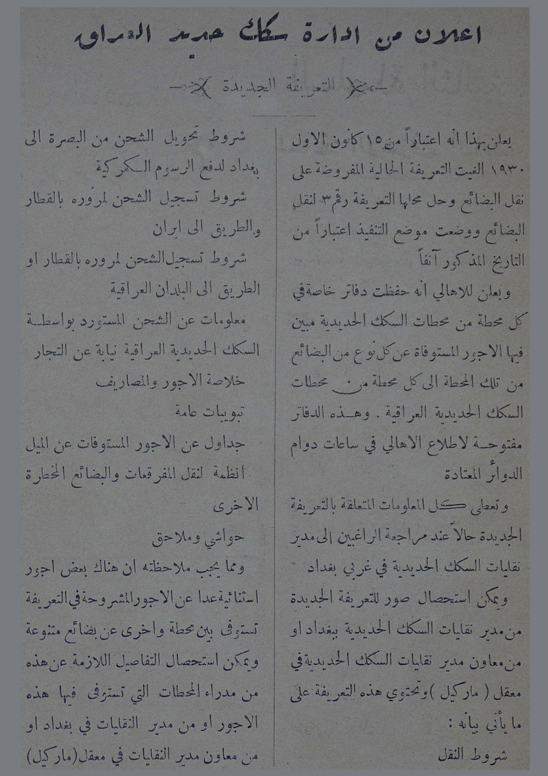 اعلان من ادارة سكك حديد العراق :