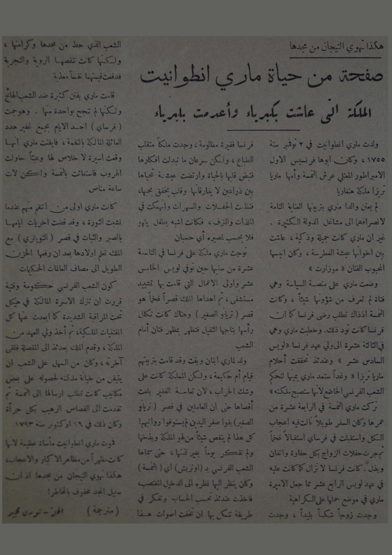صفحة من حياة ماري انطوانيت : الملكة التي عاشت بكبرياء وأعدمت بكبرياء.