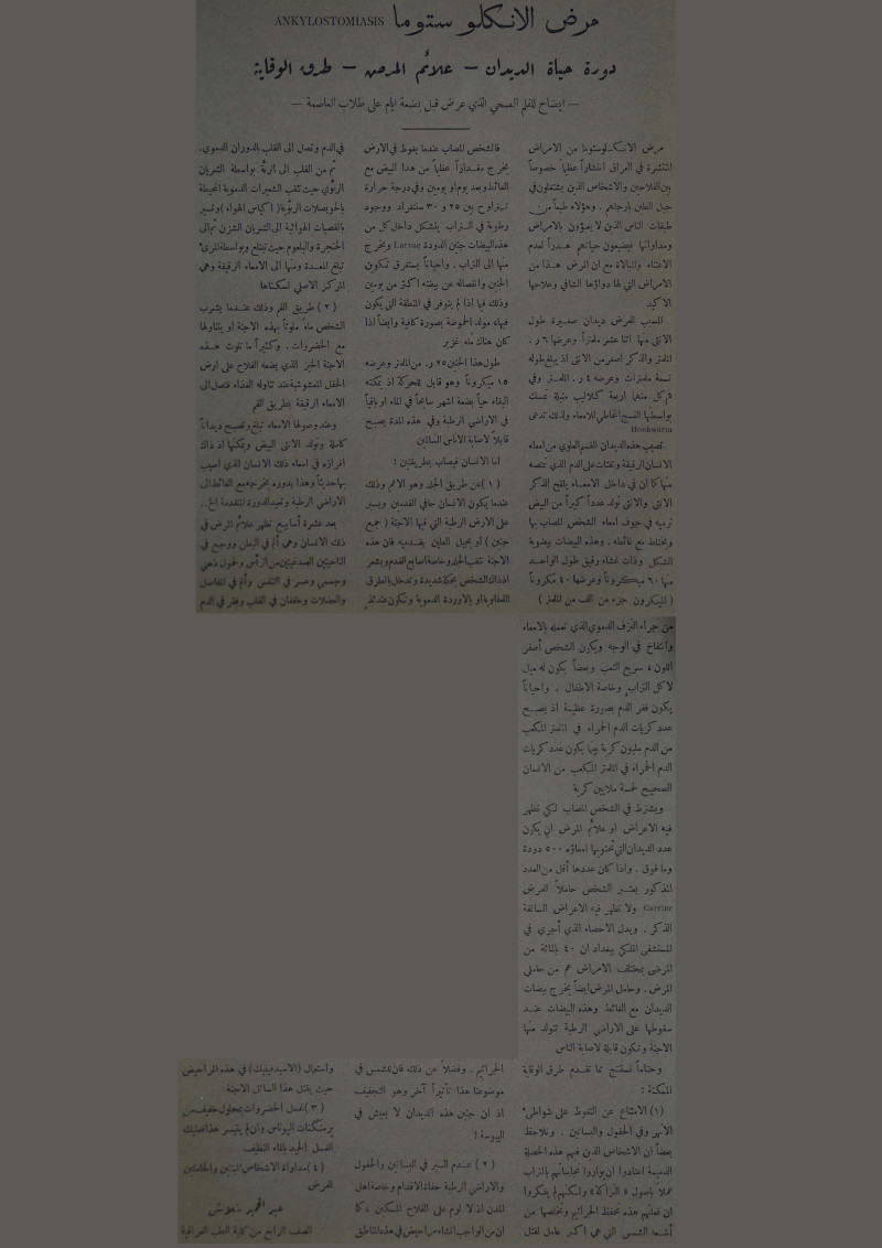 دورة حياة الديدان - علائم المرض - طرق الوقاية : ايضاح للفلم الصحي الذي عرض قبل بضعة ايام على طلاب العاصمة.