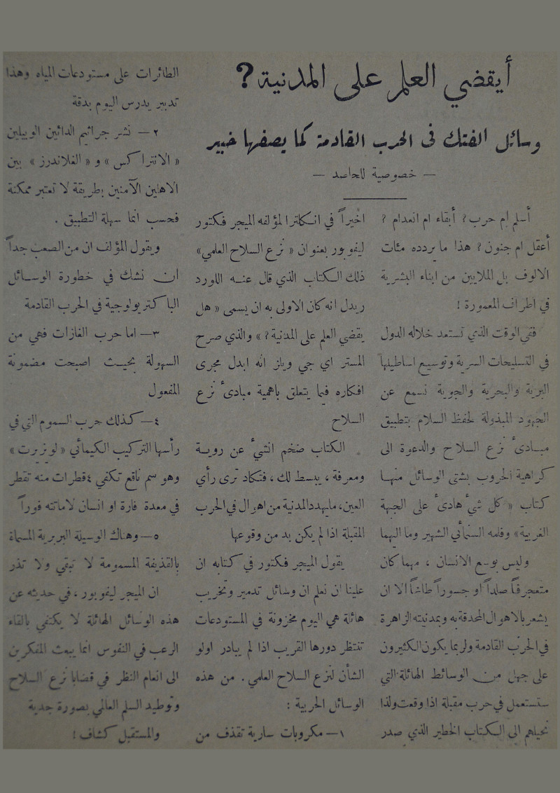 وسائل الفتك في الحرب القادمة كما يصفها خبير : خصوصية للحاصد.