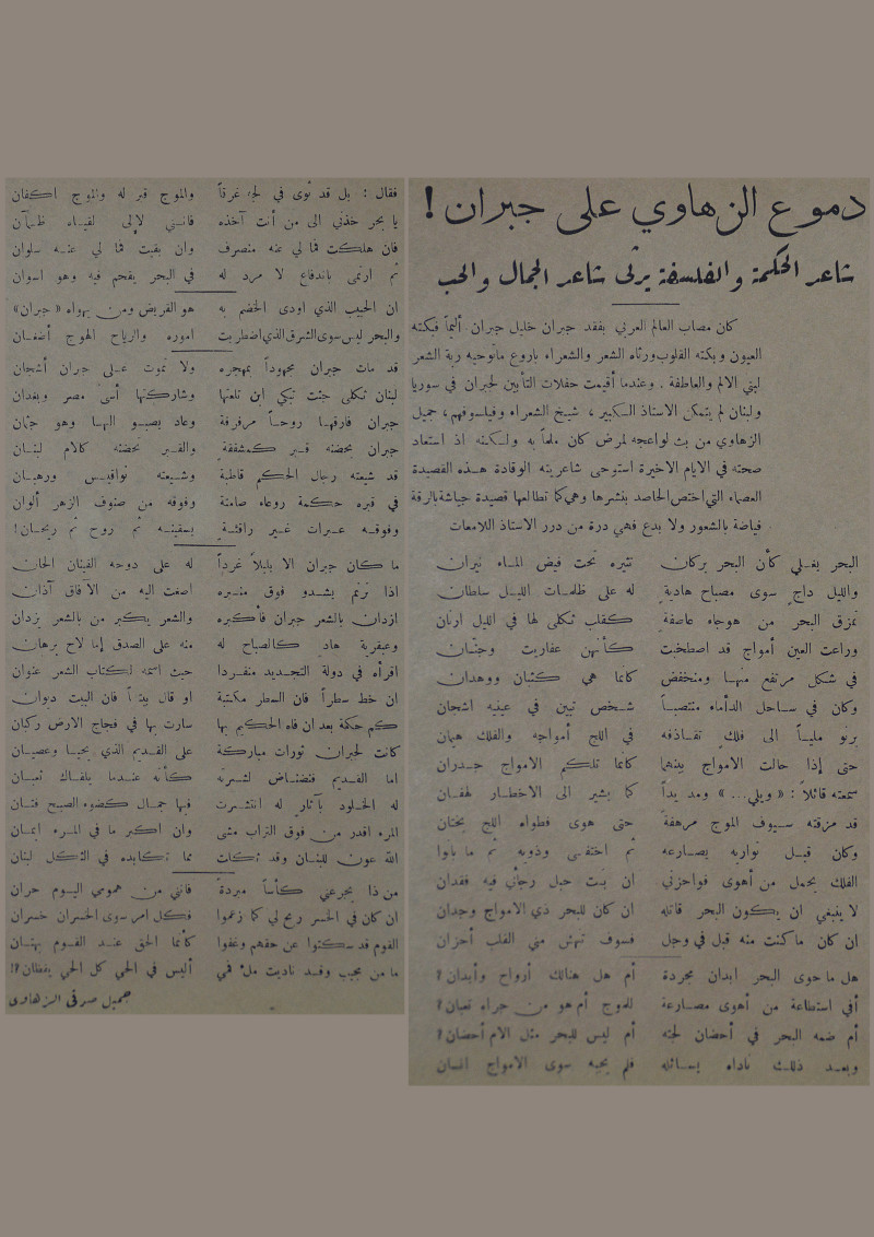 دموع الزهاوي على جبران :