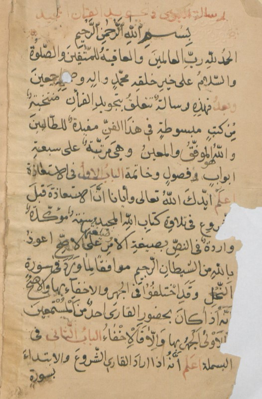 $aأوله : الحمد لله رب العالمين والعاقبة للمتقين .. وبعد فهذه رسالة تتعلق بتجويد القران، منتخبة من كتب مبسوطه في هذا الفن مفيدة للطالبين والله الموفق والمعين...