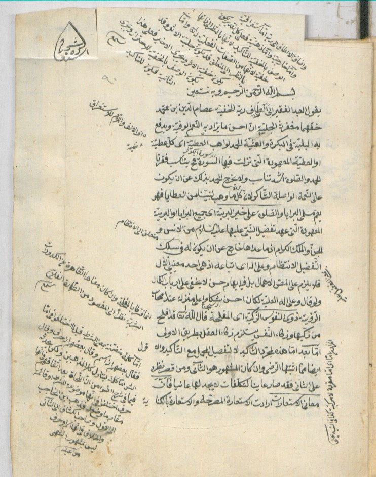 $aأوله : يقول العبد الفقير الى الطاف ربه الخفية عصام الدين بن محمد حفهما مغفرته الجليه ان احسن ما يزاد به النعم الوفية ويدفع به البلية...