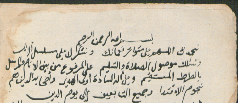$aالنسخة كتبة بخط مؤلفها: محمد بدر الدين الحسيني المغربي المراكشي مع ختمه الدائري غير المقروء.