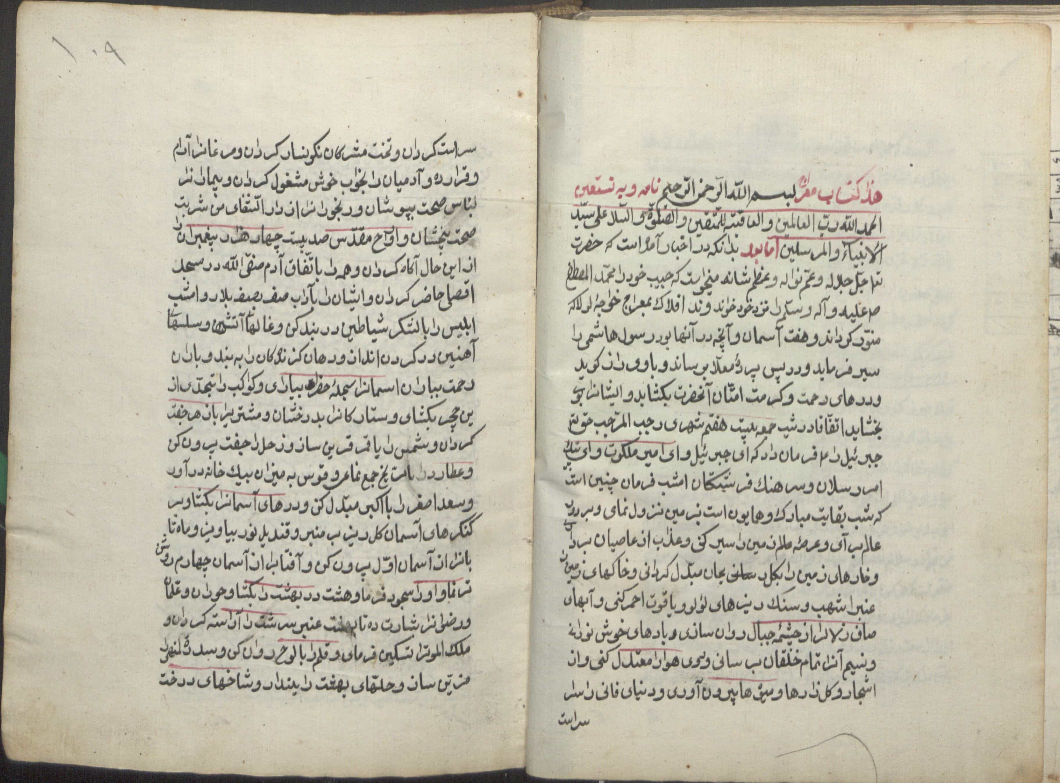 $aأول النسخة : « الحمد لله رب العالمين والعاقبة للمتقين والصلاة والسلام على سّيد الأنبياء والمرسلين، اّما بعد بدانكه در اخبار آمده است كه حضرت حق جَّل جلاله وعَّم نواله ...