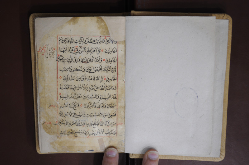 أّوله ناقص : ...والارض * والذين كفروا بآيات الله أولئك هم الخاسرون * قل اغير الله تأمروني اعبد أيها الجاهلون * ولقدأوحي اليك والى ...