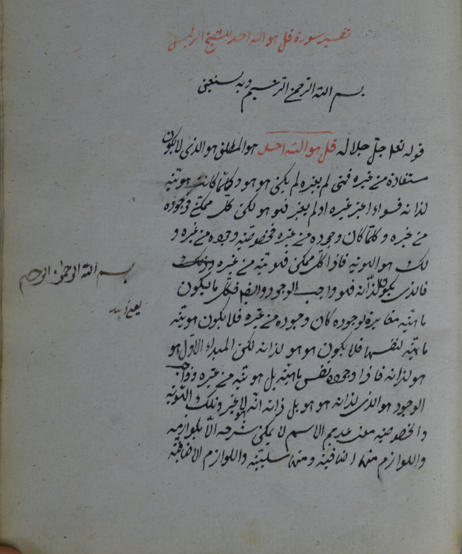 $aأّوله : ِبْسِم اللِه الَّرْحَمِن الَّرِحيِم، ُقْل ُهَو الَّلُه َأَحٌد﴿1﴾ هو المطلق هو الذي لا يكون مستفاده من غيره، فمتى لم يغيره لم يكن هو هو...