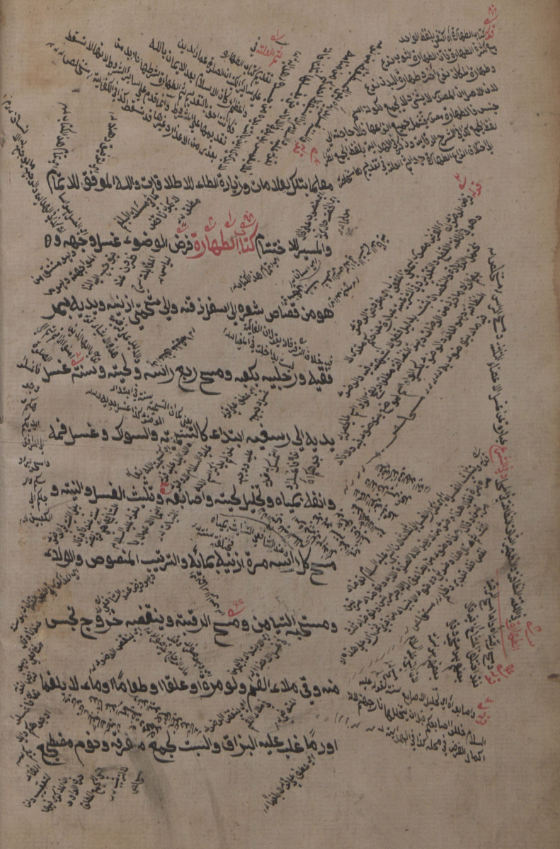 أوله ناقص : ...معلما بتلك العلامات، وزيادة الطاء للاطلاق، والله الموفق للتمام والميسر للأختام. كتاب الطهارة : فرض الوضوء غسل وجهه...