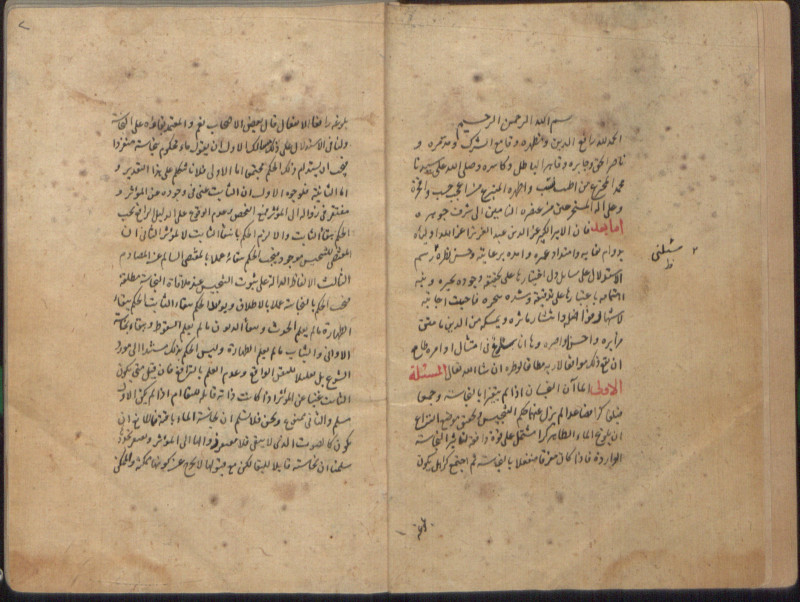 $aاوله : الحمد لله رافع الدين ومظهره وقامع الشرك ومدمره وناصر الحق وجابره وقابر الباطل وكاسره وصلى الله على سيدنا محمد المخترع من اطيب نسب واطهره المتبرع من اعجب حسب وافخره وعلى آله المستخرجين من عنصره...