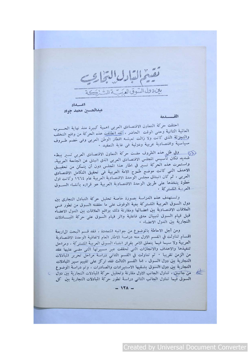 تقييم التبادل التجاري بين دول السوق العربية المشتركة /