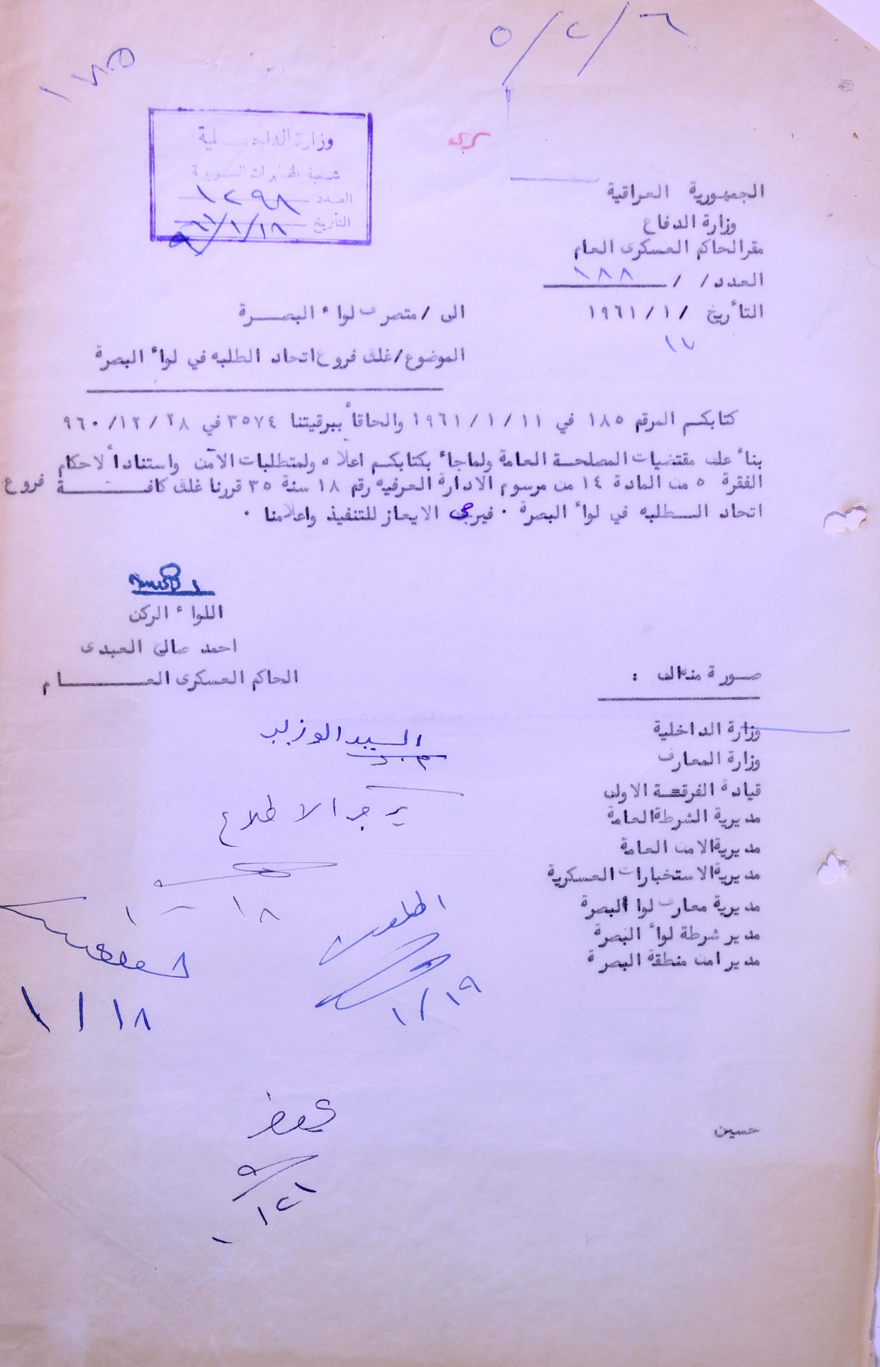 غلق فروع اتحاد الطلبة في لواء البصرة،