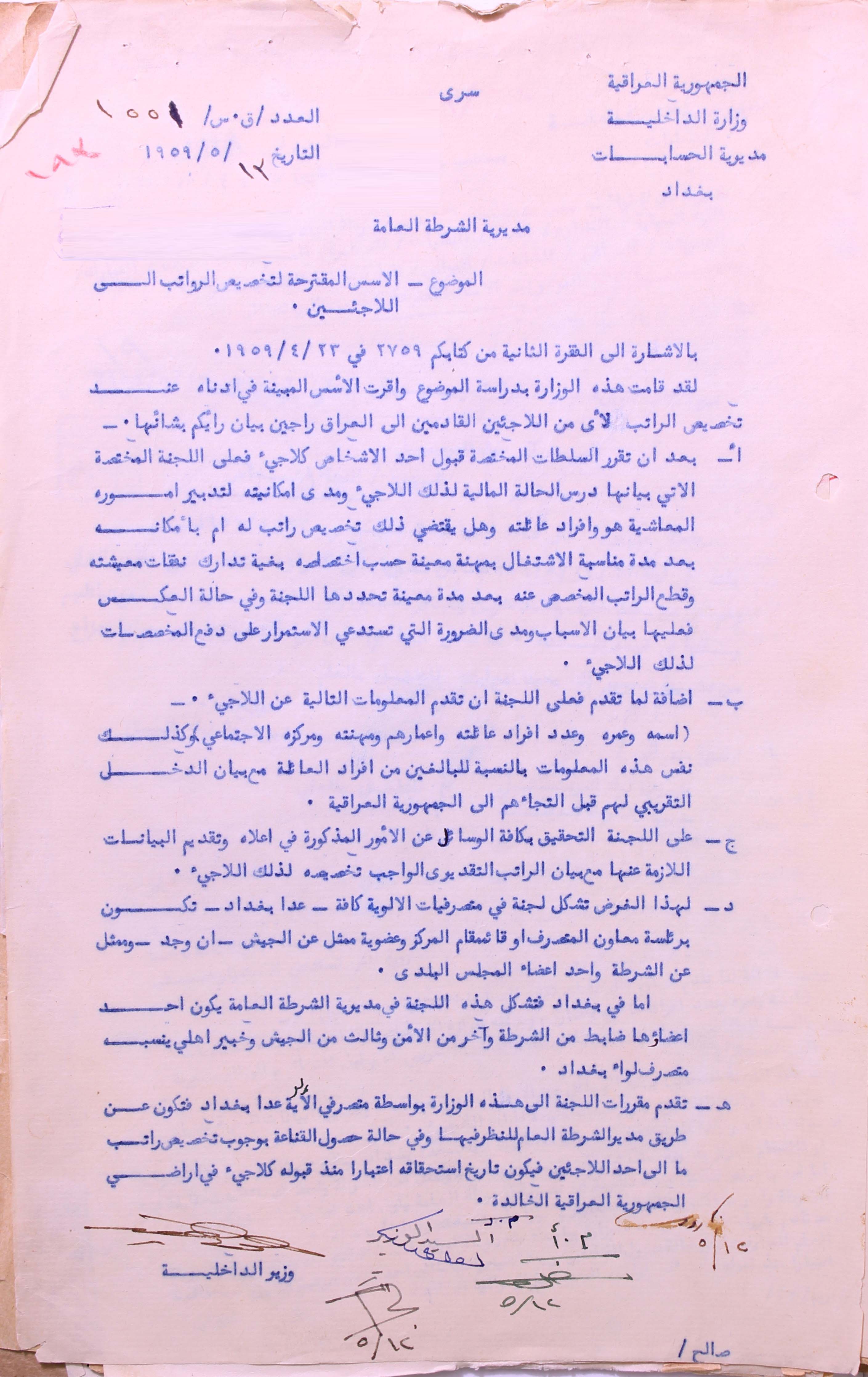 الاسس المقترحة لتخصيص الرواتب الى اللاجئين،