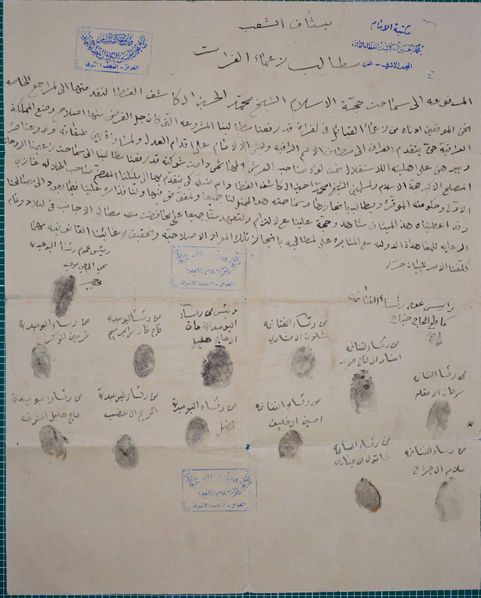 [رسالة ميثاق الشعب مطالب زعماء الفرات الى الشيخ محمد الحسين كاشف الغطاء]