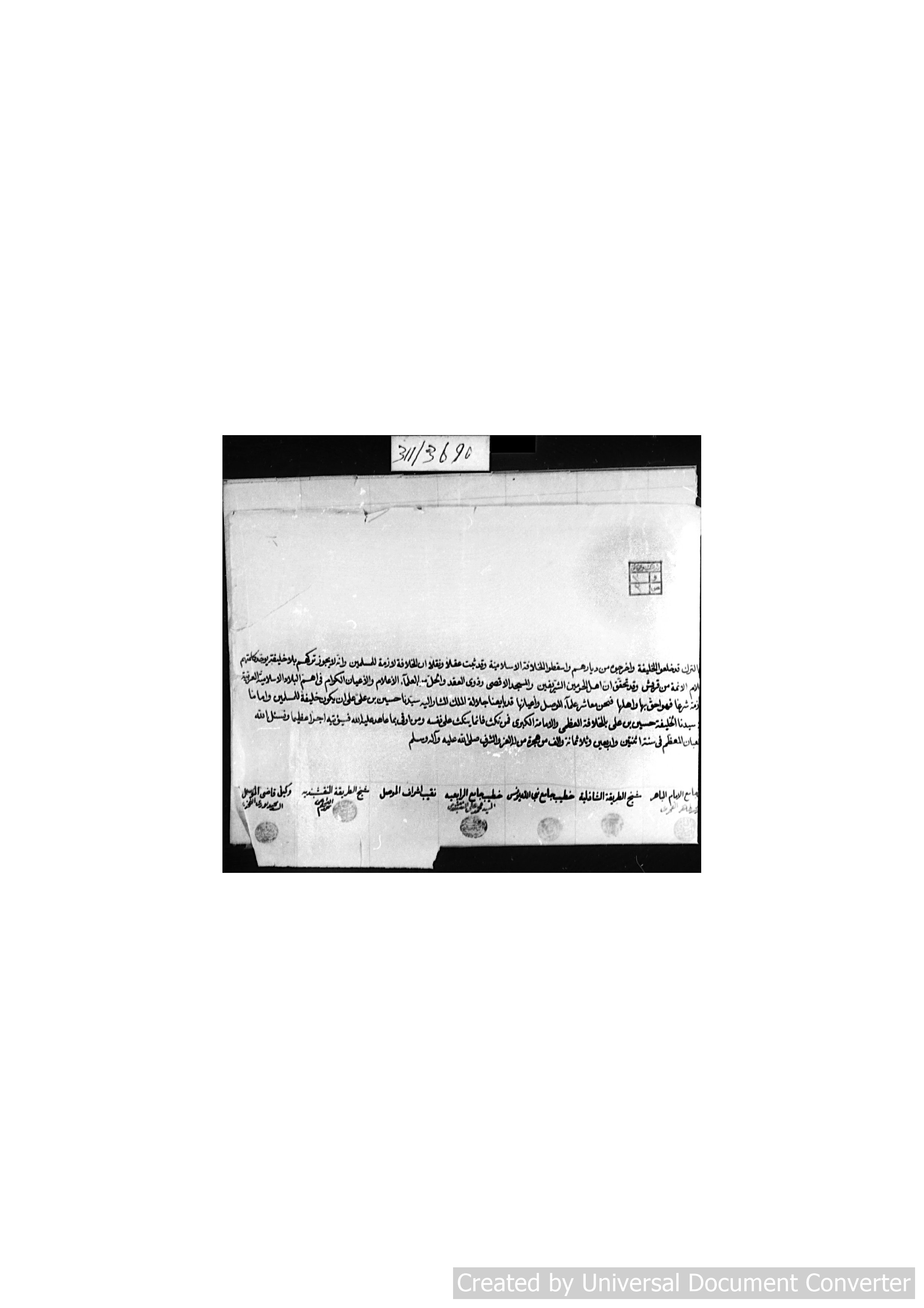 [مبايعة الملك الشريف حسين بن علي القريشي الهاشمي الحسني على الخلافة من قبل بعض الشخصيات العراقية]