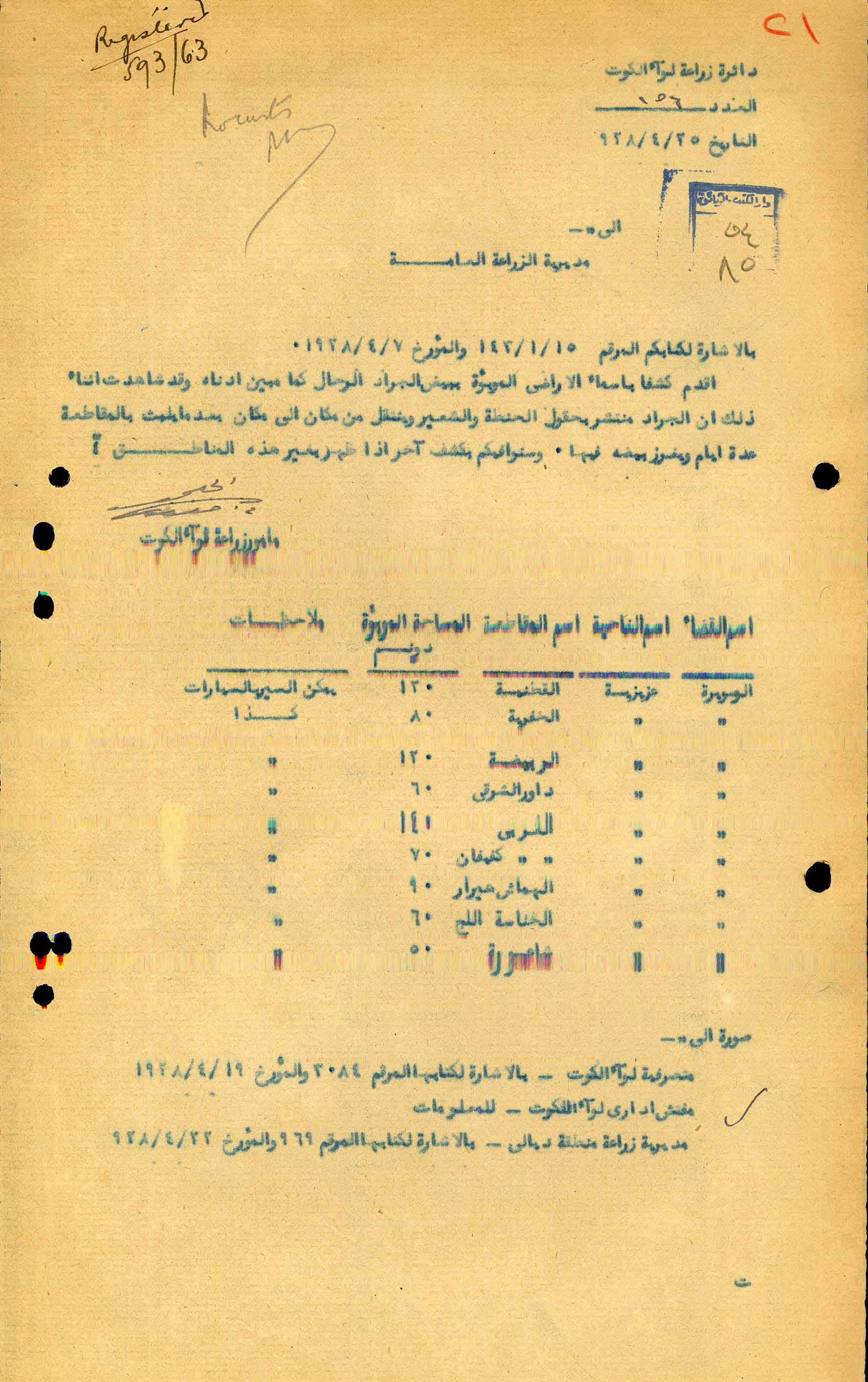 [اسماء الاراضي الموبؤة ببيض الجراد الرحال في الكوت]