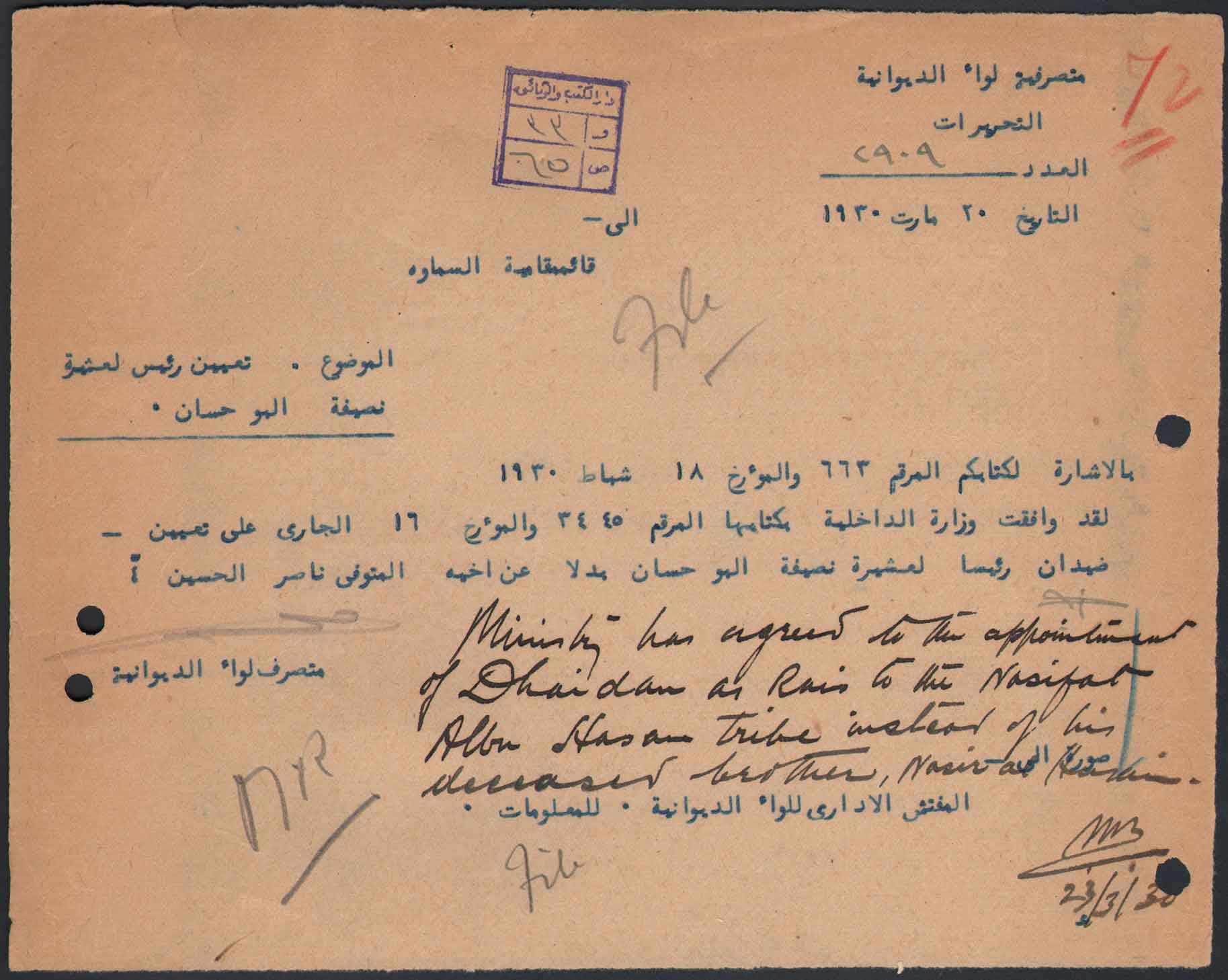 تعيين رئيس لعشيرة نصيفة البو حسان