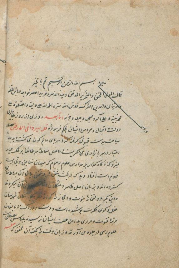 أول النسخة : قال المولى المحقق... خواجه صائن المله والدنيا والدين التركه قدس الله سره : الحمد لله على وليه، والصلاة على محمد نبيه، وعلى آله وصحبه.