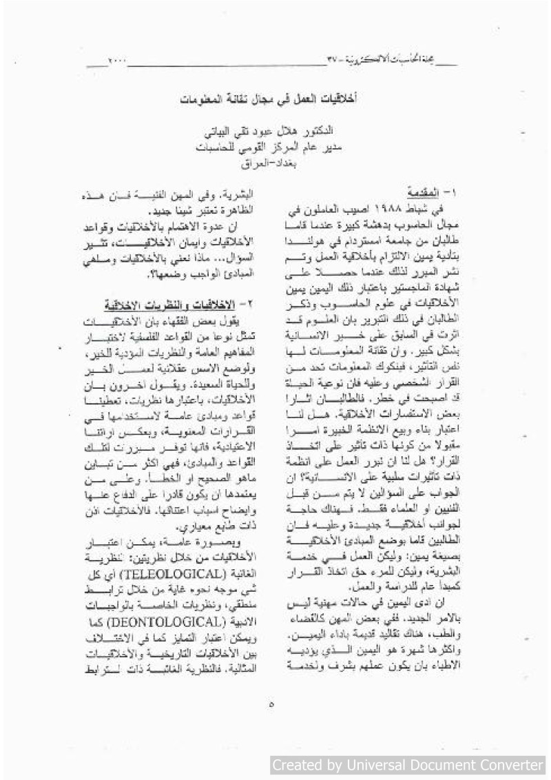 أخلاقيات العمل في مجال تقانة المعلومات /
