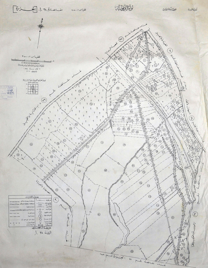 رسمت في مديرية المساحة العامة وفق الخارطة الاصلية الموقعة من قبل رئيس التسوية و المساح.