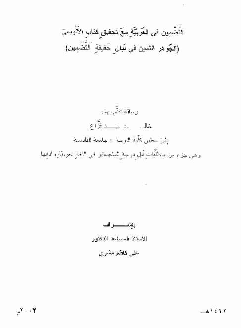 مع، تحقيق كتاب الالوسي (الجوهر الثمين في بيان حقيقة التضمين) /