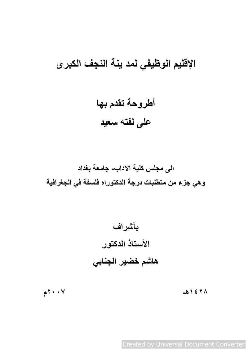 الاقليم الوظيفي لمدينة النجف الكبرى /