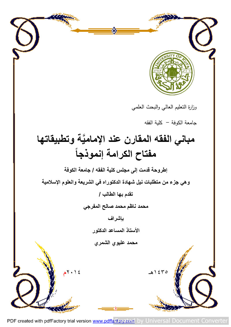 جامعة الكوفة (النجف، العراق). كلية الفقه، المؤسسة المانحة للدرجة.