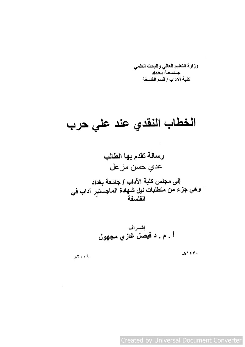 Criticized Oration of Ali Harb /
