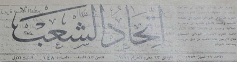 العدد 1، السنة 1 (25 كانون الثاني 1959)-