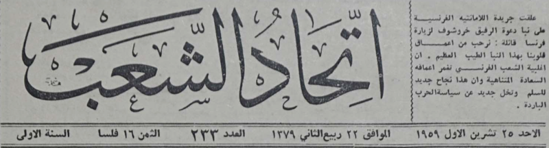 العدد 1، السنة 1 (25 كانون الثاني 1959)-