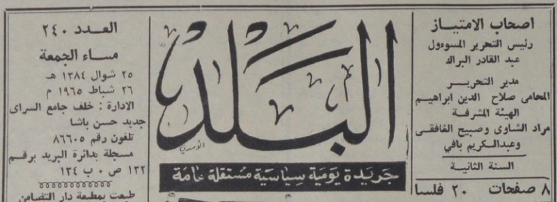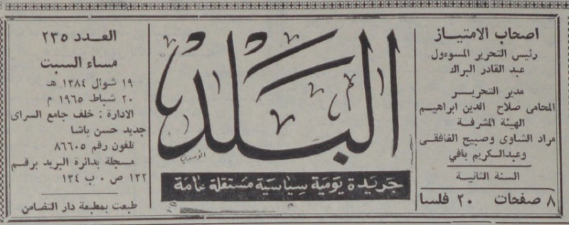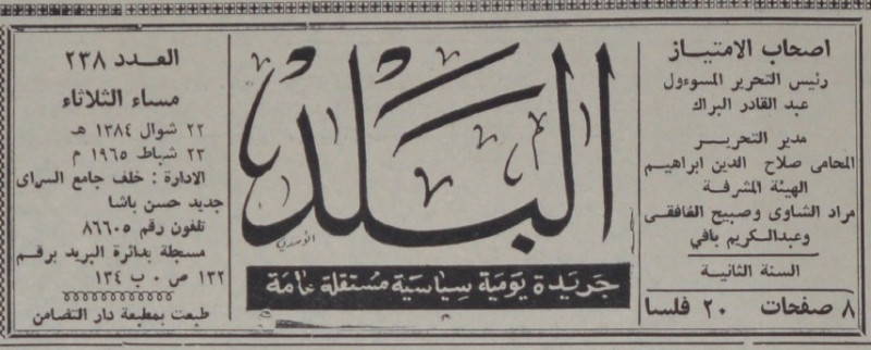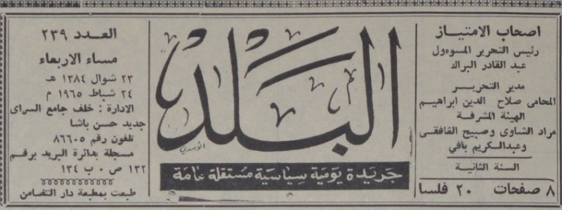 رئيس التحرير المسؤول : عبد القادر البراك.