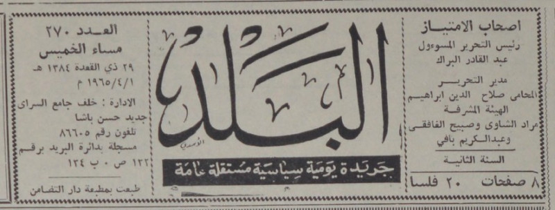 رئيس التحرير المسؤول : عبد القادر البراك.