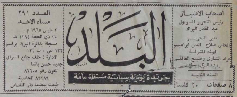 رئيس التحرير المسؤول : عبد القادر البراك.