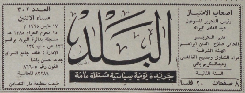 رئيس التحرير المسؤول : عبد القادر البراك.