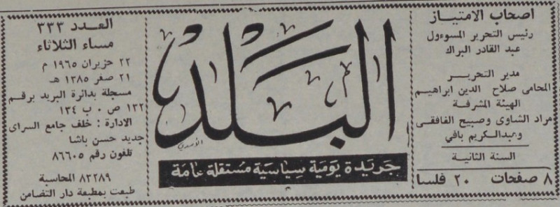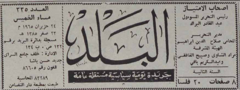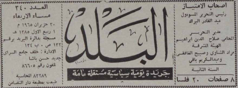 رئيس التحرير المسؤول : عبد القادر البراك.