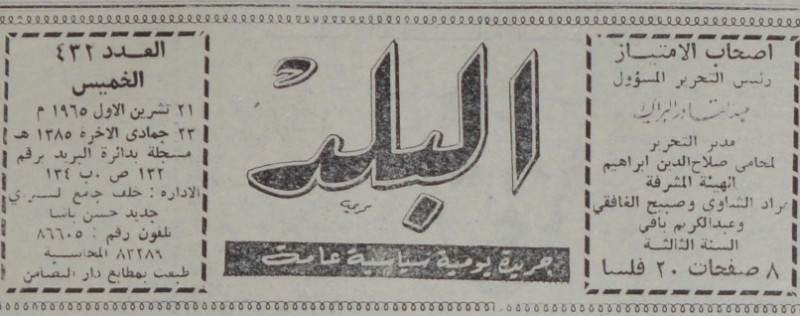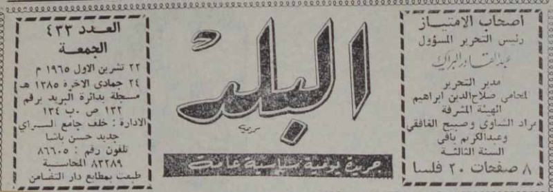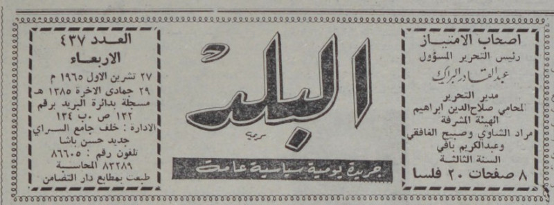 رئيس التحرير المسؤول : عبد القادر البراك.