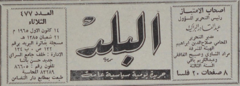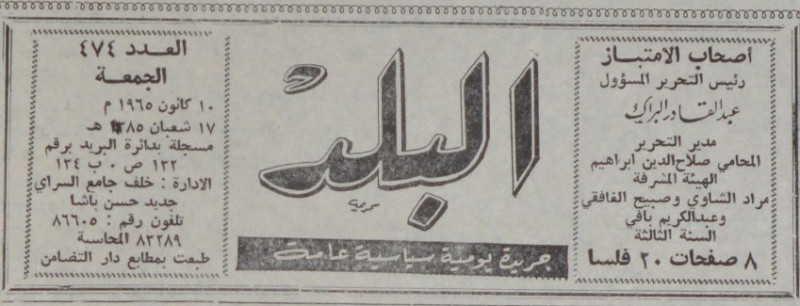 رئيس التحرير المسؤول : عبد القادر البراك.
