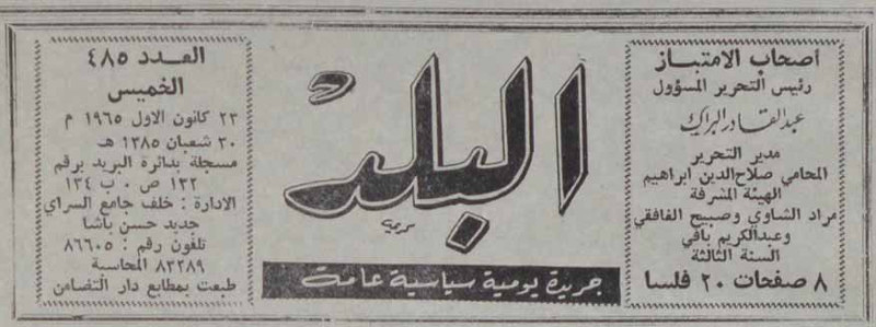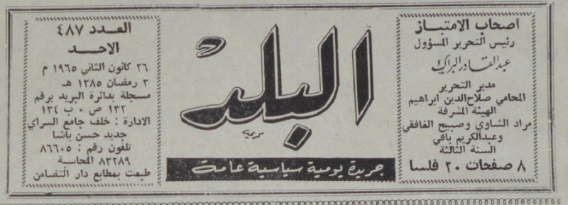 رئيس التحرير المسؤول : عبد القادر البراك.