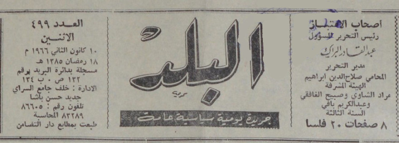 رئيس التحرير المسؤول : عبد القادر البراك.