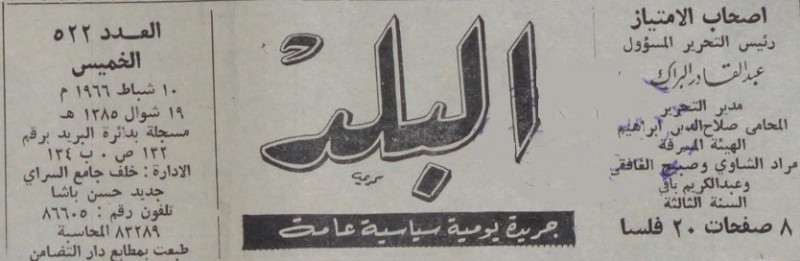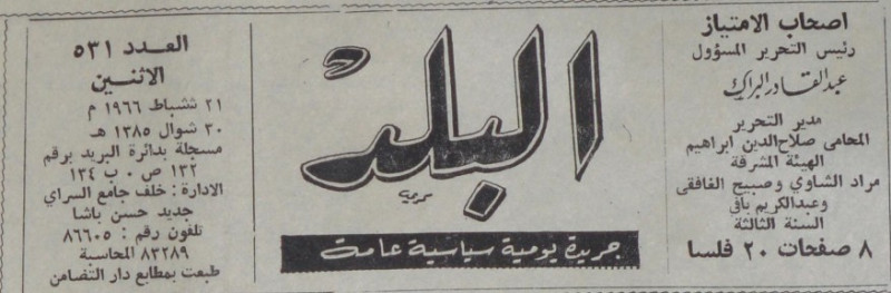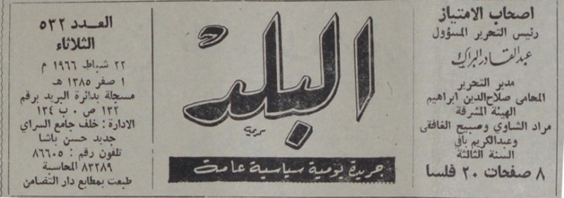 رئيس التحرير المسؤول : عبد القادر البراك.