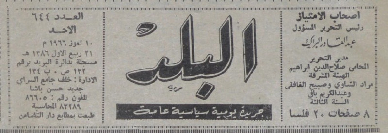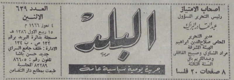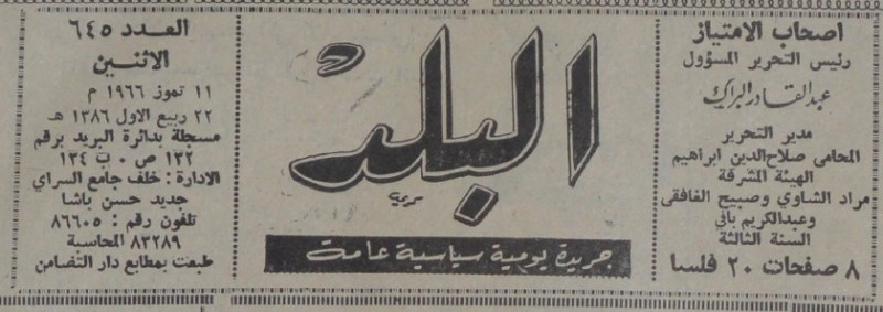رئيس التحرير المسؤول : عبد القادر البراك.