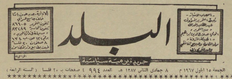 رئيس التحرير المسؤول : عبد القادر البراك.