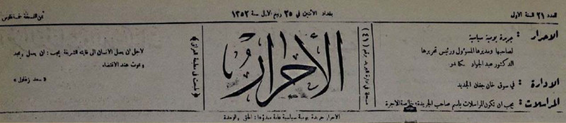صاحبها ومديرها المسؤول ومحررها : دكتور عبد الجواد الكليدار.