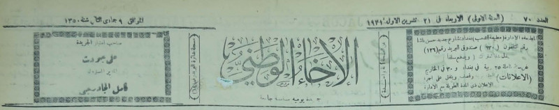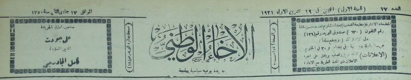 صاحب امتياز الجريدة : علي جودت.