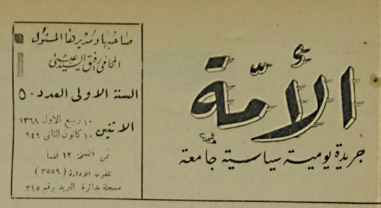 صاحبها ورئيس تحريرها : المحامي رفيق السيد عيسى.