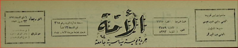 العدد 1215، السنة 45 (24 تشرين ثاني 1952)