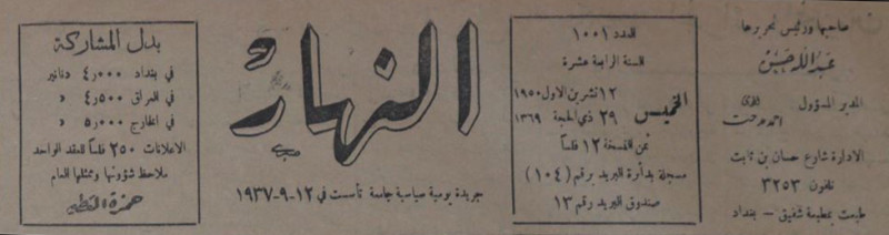 النهار (جريدة : بغداد، العراق : 1937)
