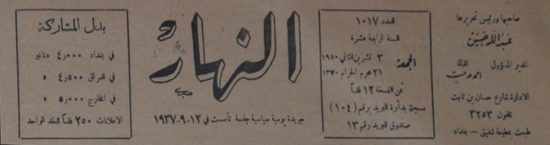 النهار (جريدة : بغداد، العراق : 1937)